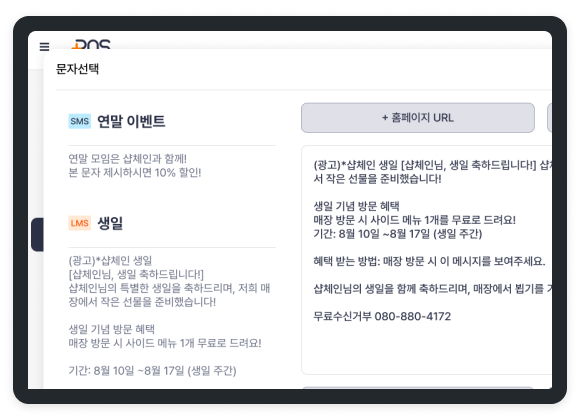 오픈 기념, 고객 생일 기념, 방문 100회 기념 등