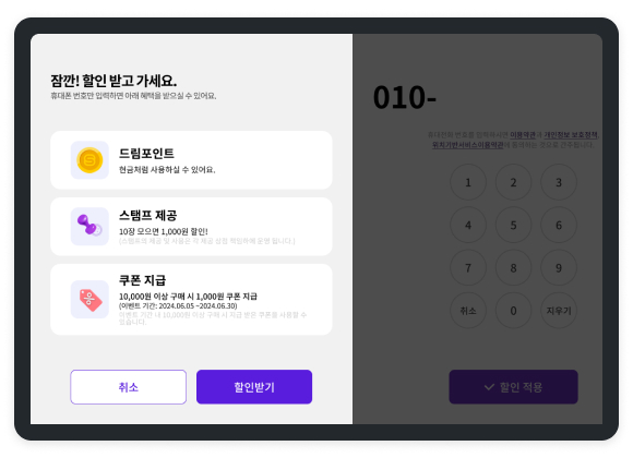 고객에게 스탬프나 쿠폰, 포인트를