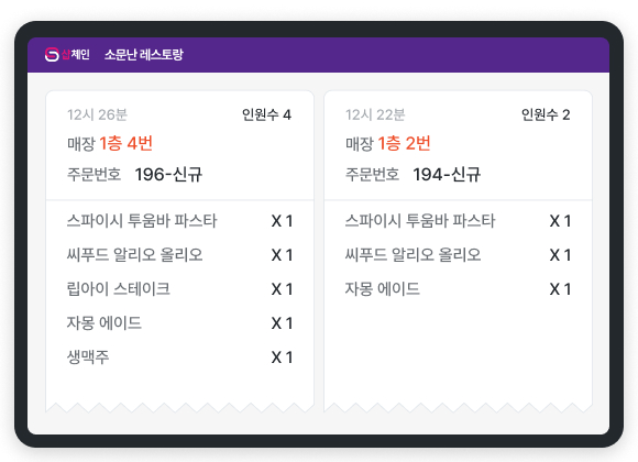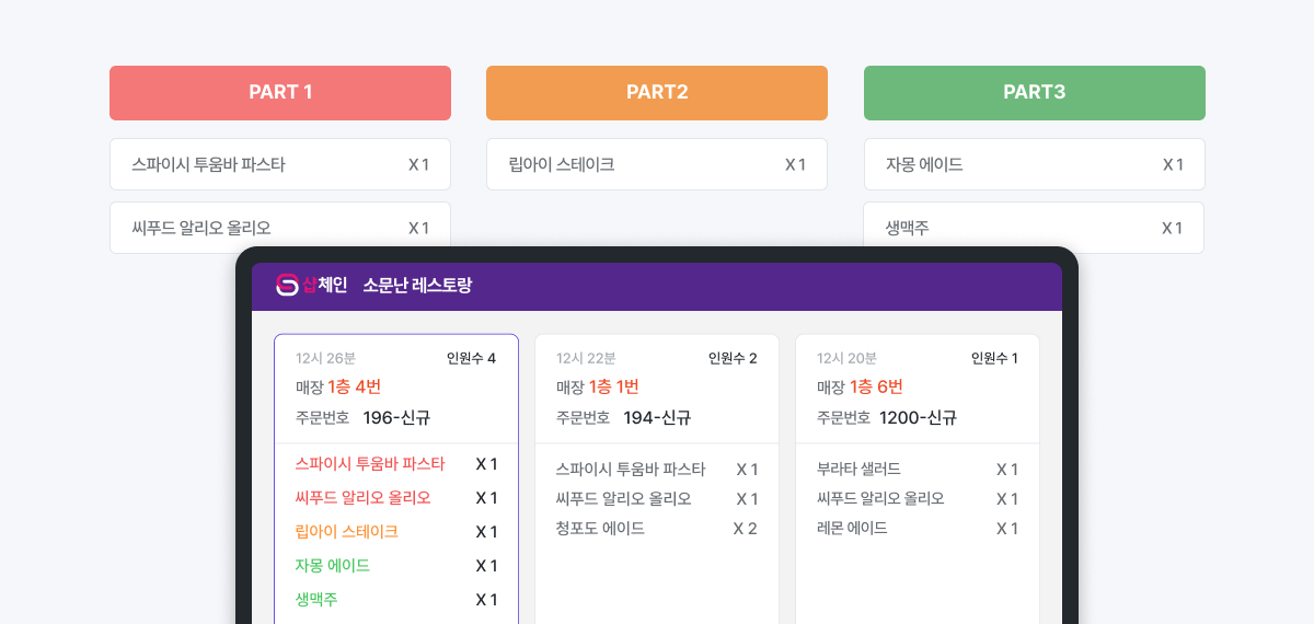 주문 들어온 메뉴를 각 조리 파트별로 알아서 분리해서 전송하니까
