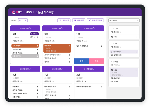 HDS로 서빙, 퇴식 선택부터 테이블 지정까지 가능해요.