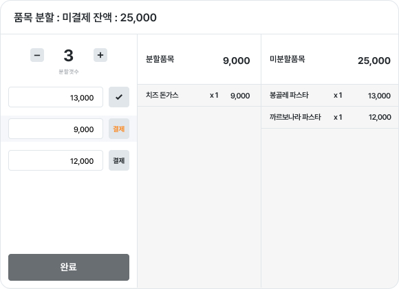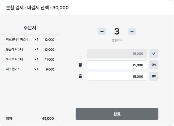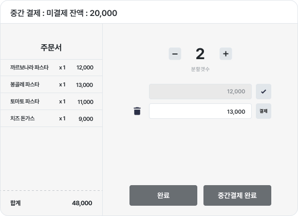 분할 결제, 품목 결제, 중간 결제까지 다 되니까