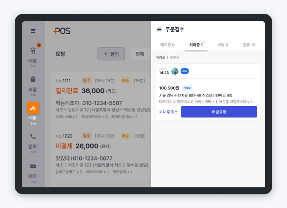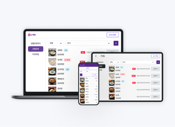 포스, 주방주문, 홀 주문관리, 테이블오더 등
